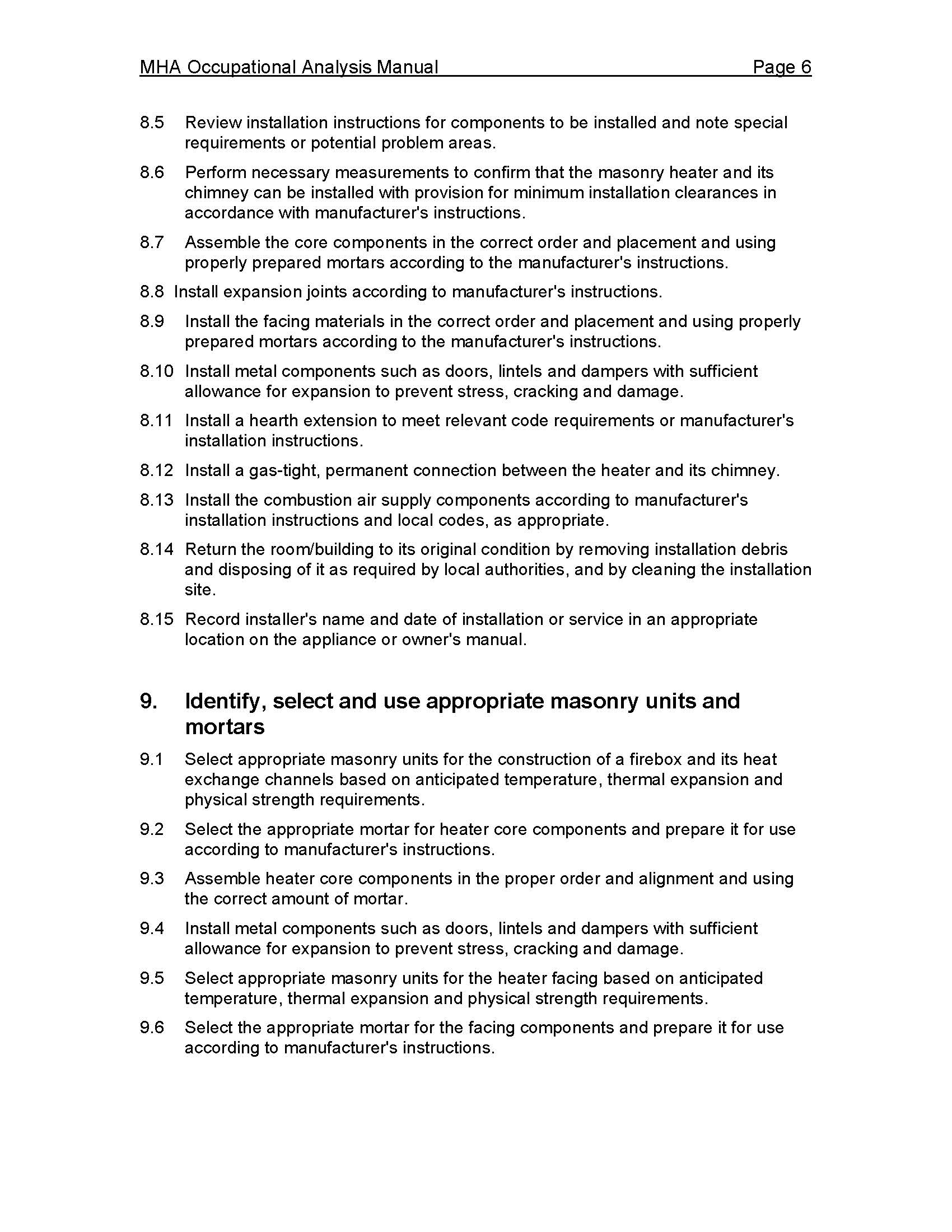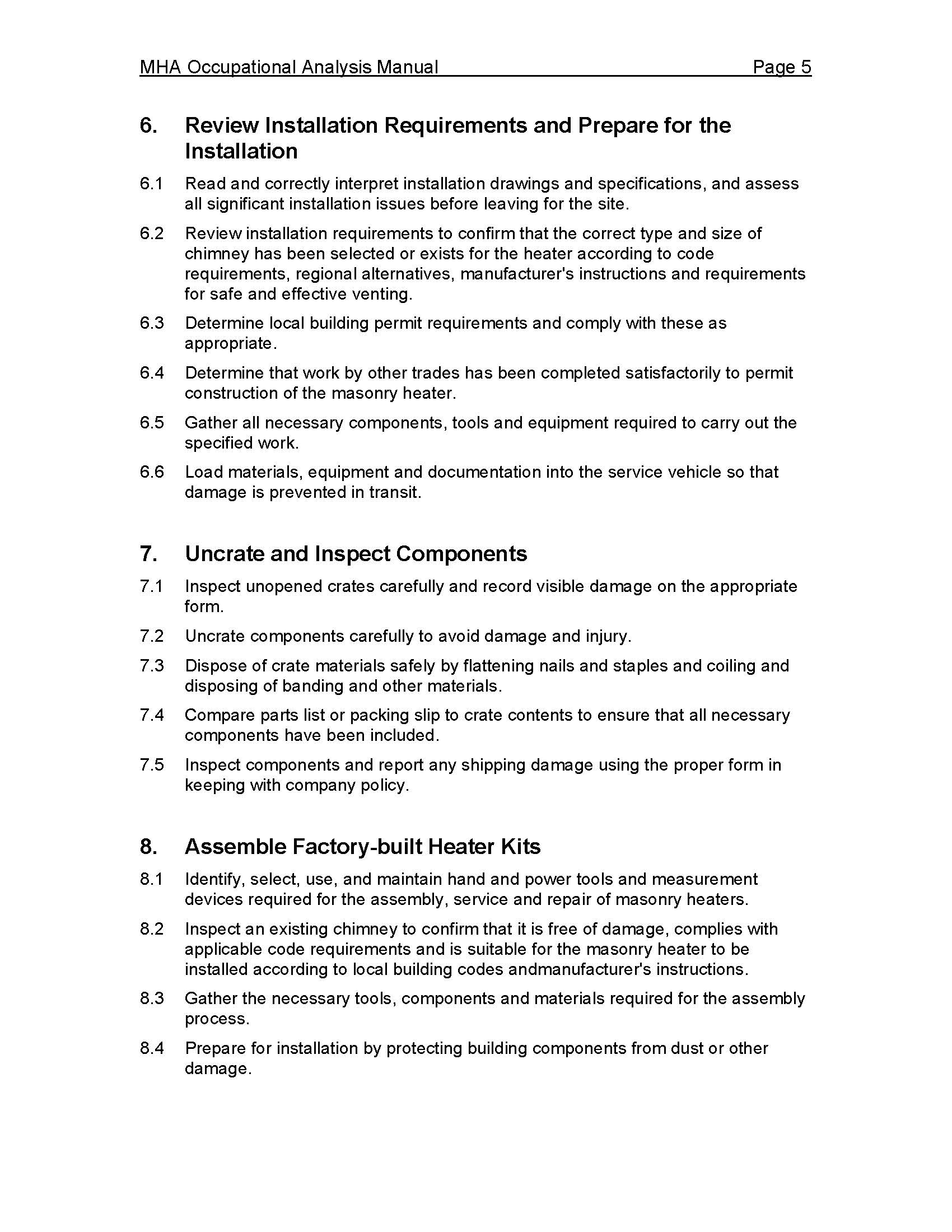 Occupational Analysis Manual for Masonry Heater Designers and Builders