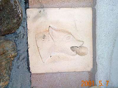 Jerry Frisch's wolfshead air supply. With glass doors on the Firecrest, the combustion air blows from the wolf's mouth, and it becomes the Frisch-Rosin fireplace. It is very clean burning and emissions certified in Washington State. This air supply was developed at Lopez Labs, MHA's test facility.