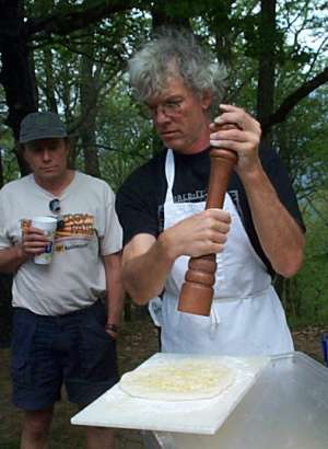 The lapidary group was sharing Wildacres with us. We decided to invite them down for a pizza party. They are suitably impressed with the final product.