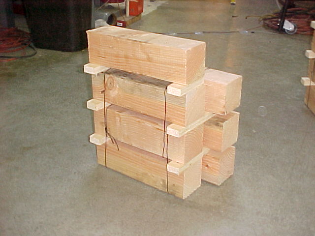 We considered splitting the wood into smaller pieces (which is permitted by the rules) so that it would burn faster - about as fast, albeit for a shorter time, as the larger fuel loads in the smaller fireplaces - but in the end to give the rules a fair test, OMNI staff convinced us to use 4"x4"s wired together like the fuel loads in the other fireplaces.
