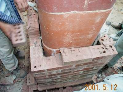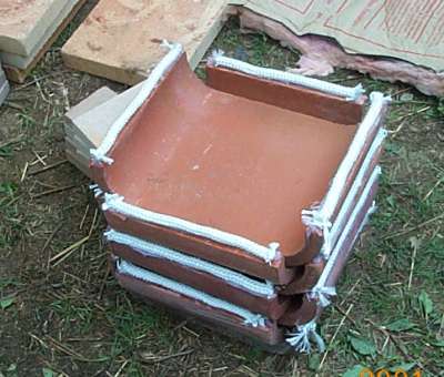 And a final mortar cap. Often, cement mortar is used for this final cap and a piece of mesh is embedded in it.