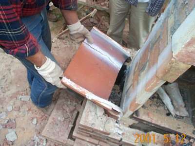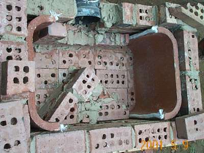 The next day, the heater was dismantled. To most people's surprise, only the top clay flue liners had minor cracking at one top corner.