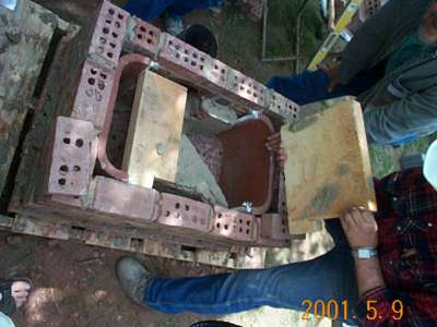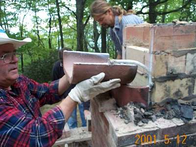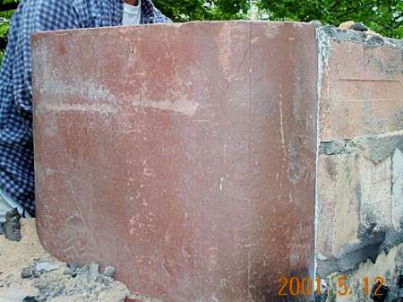 Dismantling the firebox. Two types of clay mortar were used for the firebox construction: Redart and Superior Clay fireclay. The Superior Clay fireclay had a better bond.