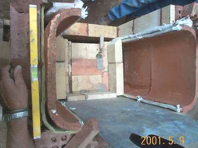 Firebox ceiling slabs being installed.