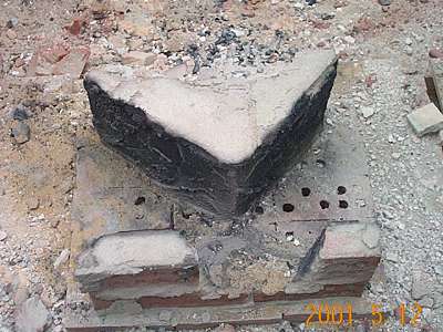 Air void visible at corners. With mortar slushing, surface temperatures would have been even higher.