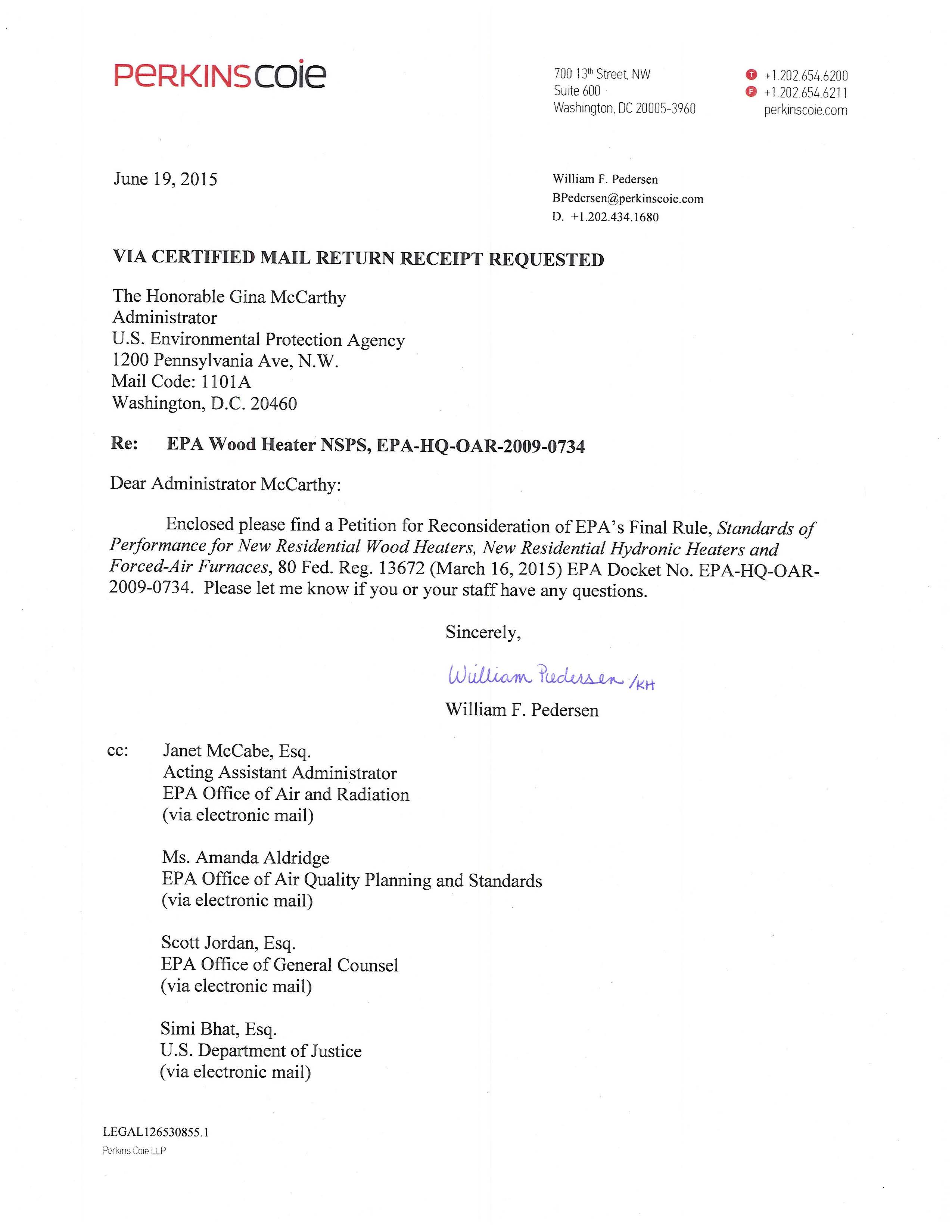 Enclosed please find a Petition for Reconsideration of EPA's Final Rule, Standards of