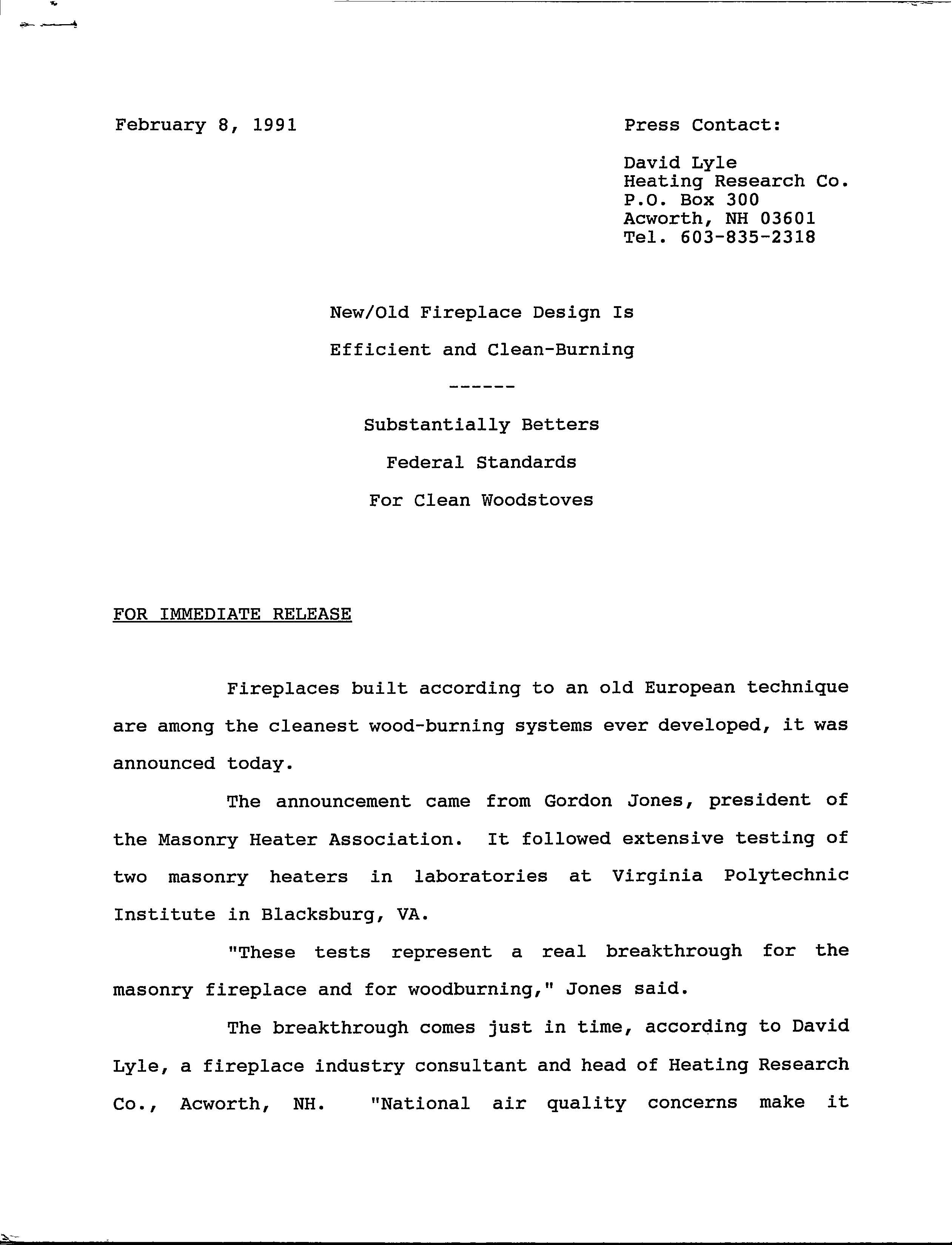 Press release: New/Old Fireplace Design Is Efficient and Clean Burning