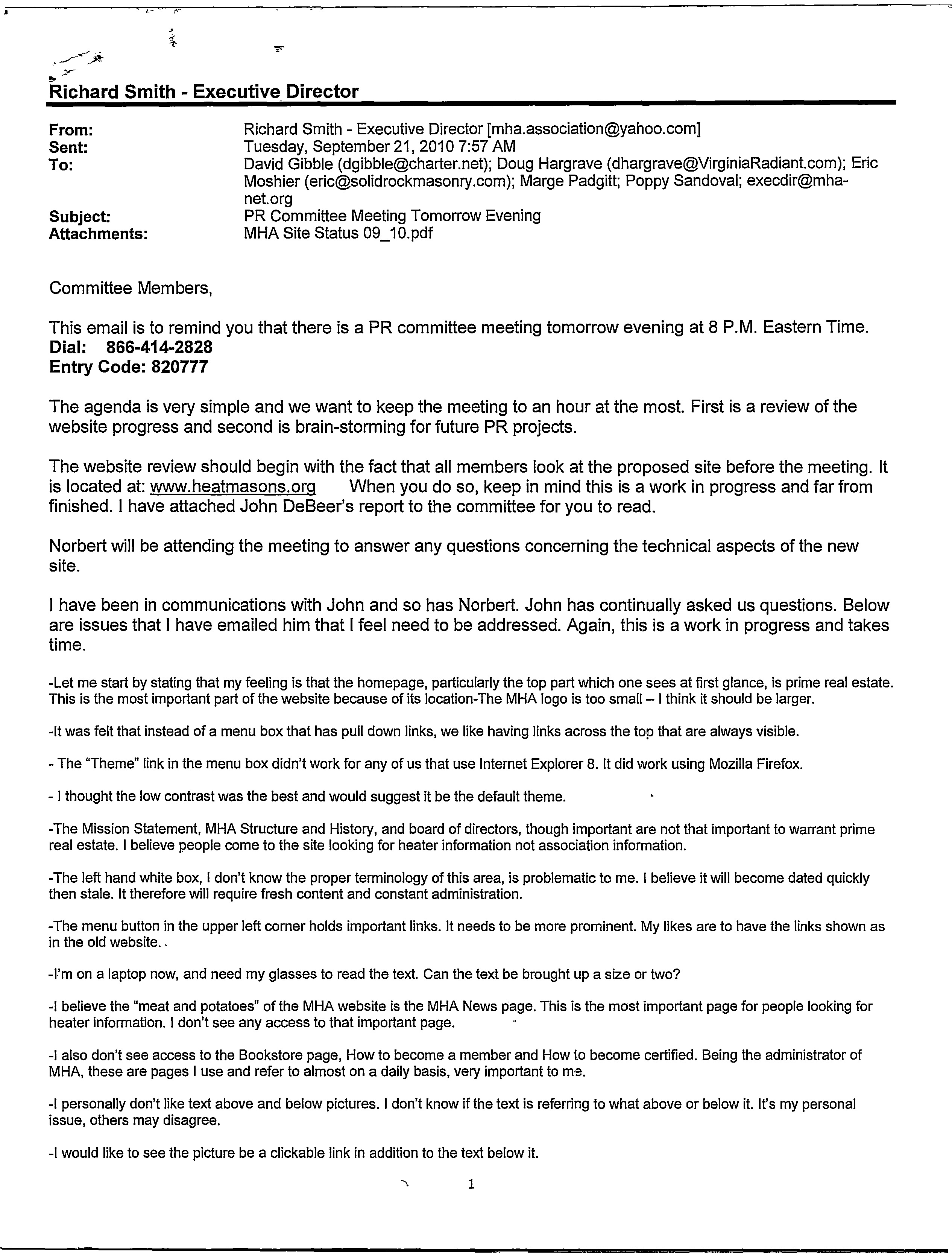 September 2011 PR Committee Meetings and Website Redevelopment Discussions