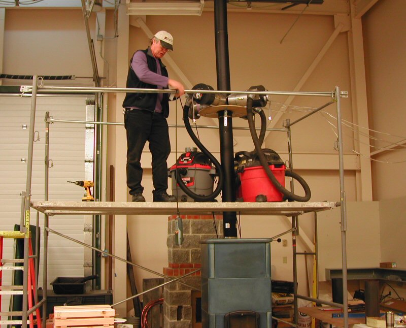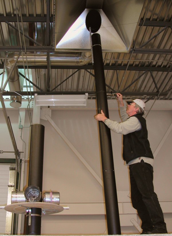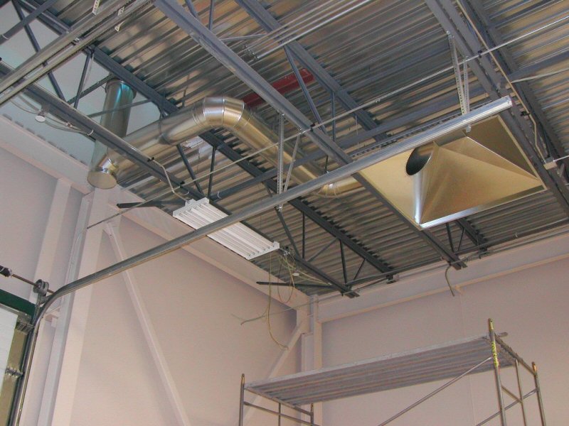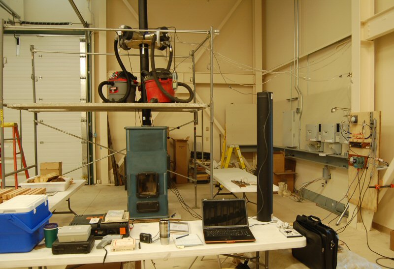 In preparation for our testing, an exhaust hood was installed inside the lab, since the test method requires that the chimney exhaust inside the test room.