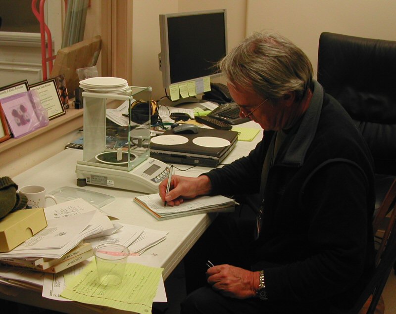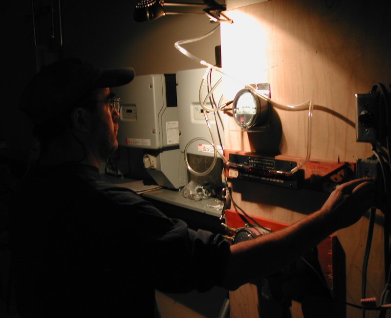 Dan Givens helps out with filter changes. Dan spent as much time helping at the lab as he could, even though he had a project on the go about 2 hours away. We started most days around 9:00 am and often finished after midnight.