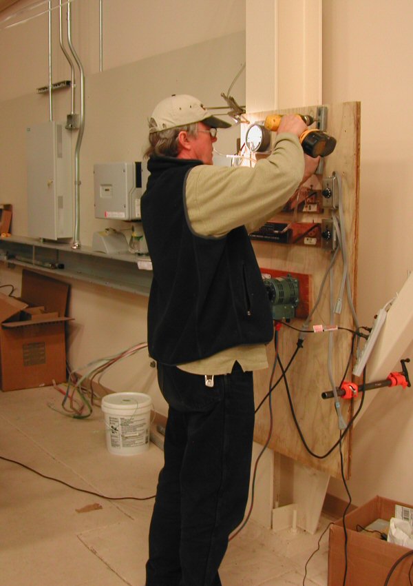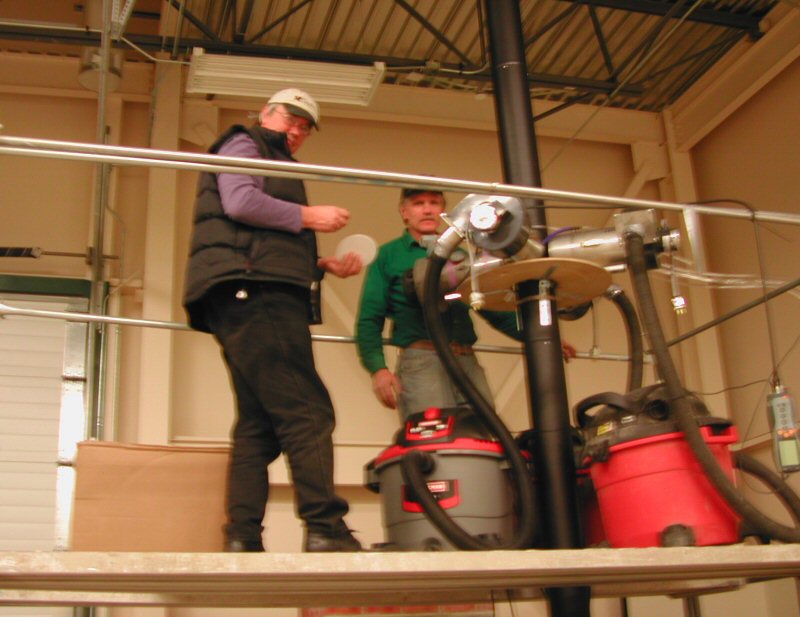 Shakeout run. Various friends dropped by to check it out. Dave is talking to Dave #2, who is the facilities manager at CCHRC, and was a great help to us. CCHRC's mandate is to disseminate "best practices" information to the building industry, so the lab welcomes visitors.