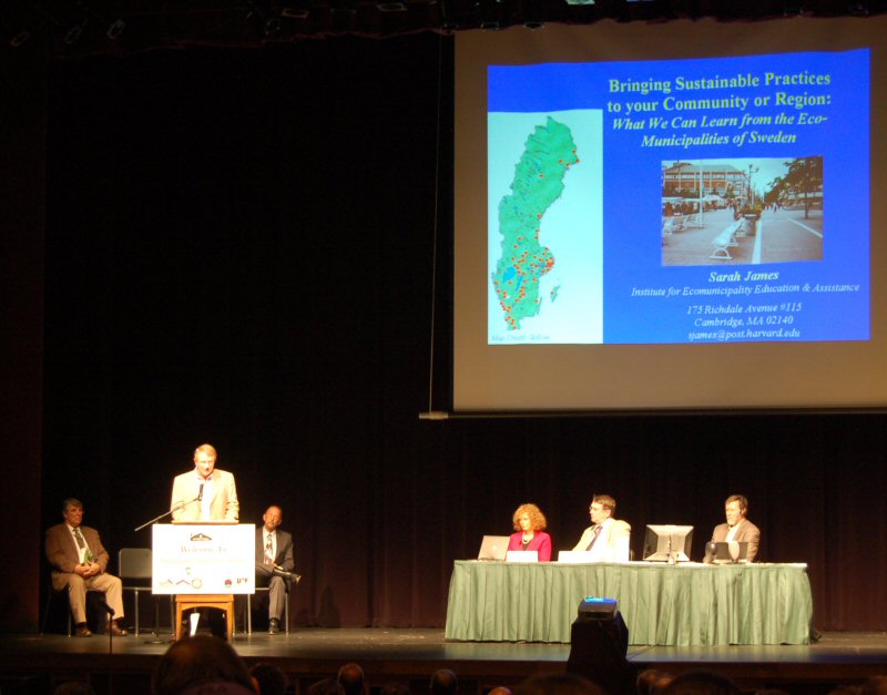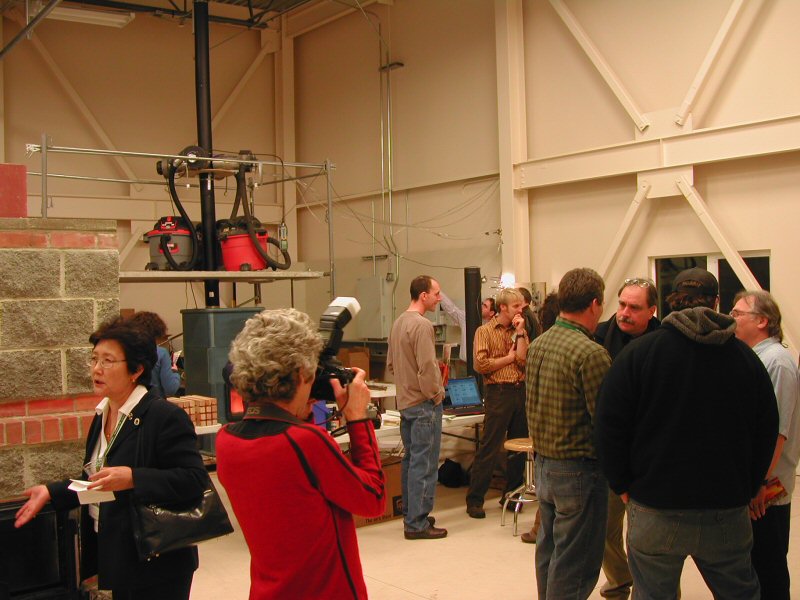 Several groups of visiting dignitaries came by for a tour of the lab. The lady at the left is a planning official from Mongolia. She recognized the heaters as similar to traditional Mongolian systems with an open firebox. Facing the camera in the huddle at the right is Oliver Drerup, senior housing consultant at CMHC. Oliver was instrumental in the founding of CCHRC and is on the Board. He was also very involved in starting Canada's R-2000 housing program. He gave a very well received closing keynote address. Oliver is an old friend - we put a masonry heater into an R-2000 house his company built in Ottawa in 1985, a first at the time. The heater appears on the back cover of David Lyle's book.