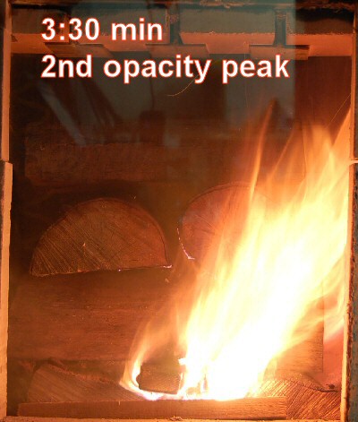| After the last opacity spike, flue temperature climbs rapidly and opacity drops rapidly. | ||
