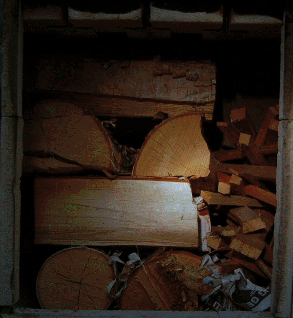 Fuel pieces 1-8, left to right. 3 lbs kindling on left.